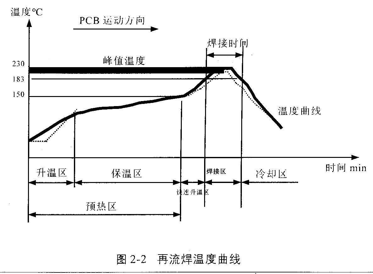 從溫度曲線(見圖2-2)分析再流焊的原理:當PCB進入升溫區(qū)(干燥區(qū))時,焊膏中的溶劑、氣體蒸發(fā)掉,同時,焊膏中的助焊劑潤濕焊盤、元器件端頭和引腳,焊膏軟化、塌落、覆蓋了焊盤、元器件端頭和引腳與氧氣隔離→PCB進入保溫區(qū)時,PCB和元器件得到充分的預(yù)熱,以防PCB突然進入焊接高溫區(qū)而損壞PCB和元器件→當PCB進入焊接區(qū)時,溫度迅速上升使焊膏達到熔化狀態(tài),液態(tài)焊錫對PCB的焊盤、元器件端頭和引腳潤濕、擴散、漫流或回流混合形成焊錫接點→PCB進入冷卻區(qū),使焊點凝固。此時完成了再流焊。