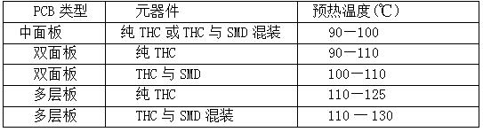 印制板預熱溫度和時間要根據(jù)印制板的大小、厚度、元器件的大小和多少,以及貼裝元器件的多少來確定。預熱溫度在90—130℃(PCB表面溫度),多層板及有較多貼裝元器件時預熱溫度取上限。預熱時間由傳送帶速度來控制。如預熱溫度偏低或和預熱時間過短,焊劑中的溶劑揮發(fā)不充分,焊接時產(chǎn)生氣體引 起氣孔、錫珠等焊接缺陷;如預熱溫度偏高或預熱時 間過長,焊劑被提前分解,使焊劑失去活性,同樣會引起毛刺、橋接等焊接缺陷。因此,要恰當控制頂熱溫度和時間,最佳的預熱溫度是在波峰焊前涂覆在PCB底面的焊劑帶有粘性(見表3-1)。