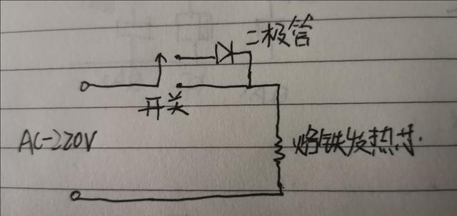 家庭用的是交流電,當(dāng)把開關(guān)撥向二極管一側(cè)時,交流電只有一般的時間通過電烙鐵的發(fā)熱芯,這樣就可以控制電烙鐵的發(fā)熱,從而可以避免短暫不使用期間烙鐵頭氧化。而要開始使用時,只需要把開關(guān)撥向另一端,電烙鐵的發(fā)熱芯就處于全速發(fā)熱狀態(tài),快速升溫。