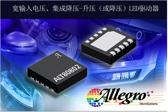 美國新罕布什爾州曼徹斯特市–Allegro MicroSystems, LLC(以下簡稱Allegro)宣布推出62xx/808xx 系列照明LED驅動器產品 的最新成員 ALT80802。新產品能夠滿足采用12V電池輸入驅動,單個LED串具有3到4個白光LED的重要市場趨勢,非常適合于霧燈、倒車燈、日間行車燈(DRL)、后視鏡側燈和其他汽車照明等應用。ALT80802解決方案能夠以其他競爭對手幾乎不可能的方式滿足這些照明要求,具有獨特的2MHz工作性能,增強的PWM調光能力和故障保護功能,并且可大幅減少外部元件的數(shù)量。此外,這款新器件可在高達2A電流下工作在降壓模式,能夠以電池驅動1到2個WLED,或者從預升壓電源驅動多達12個WLED。