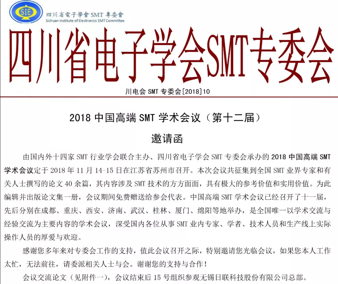 2018中國高端SMT學(xué)術(shù)會議(第十二屆)邀請函